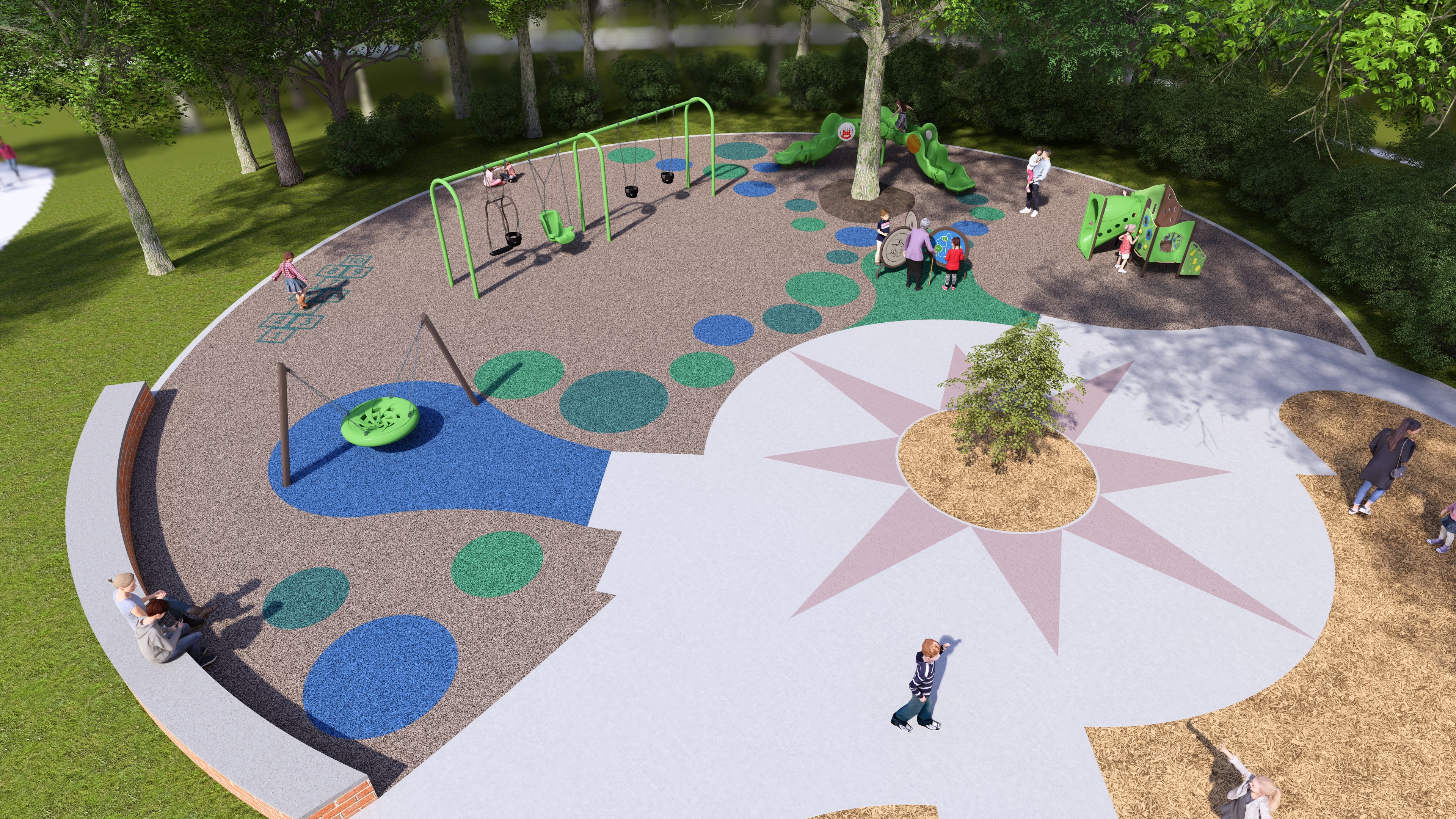 The new playground will broaden the “fun” value by incorporating new multi-generational equipment allowing children, and teens to enjoy. It will feature interactive and experiential elements and provide a more stable play surface enhancing accessibility for all types of mobility.