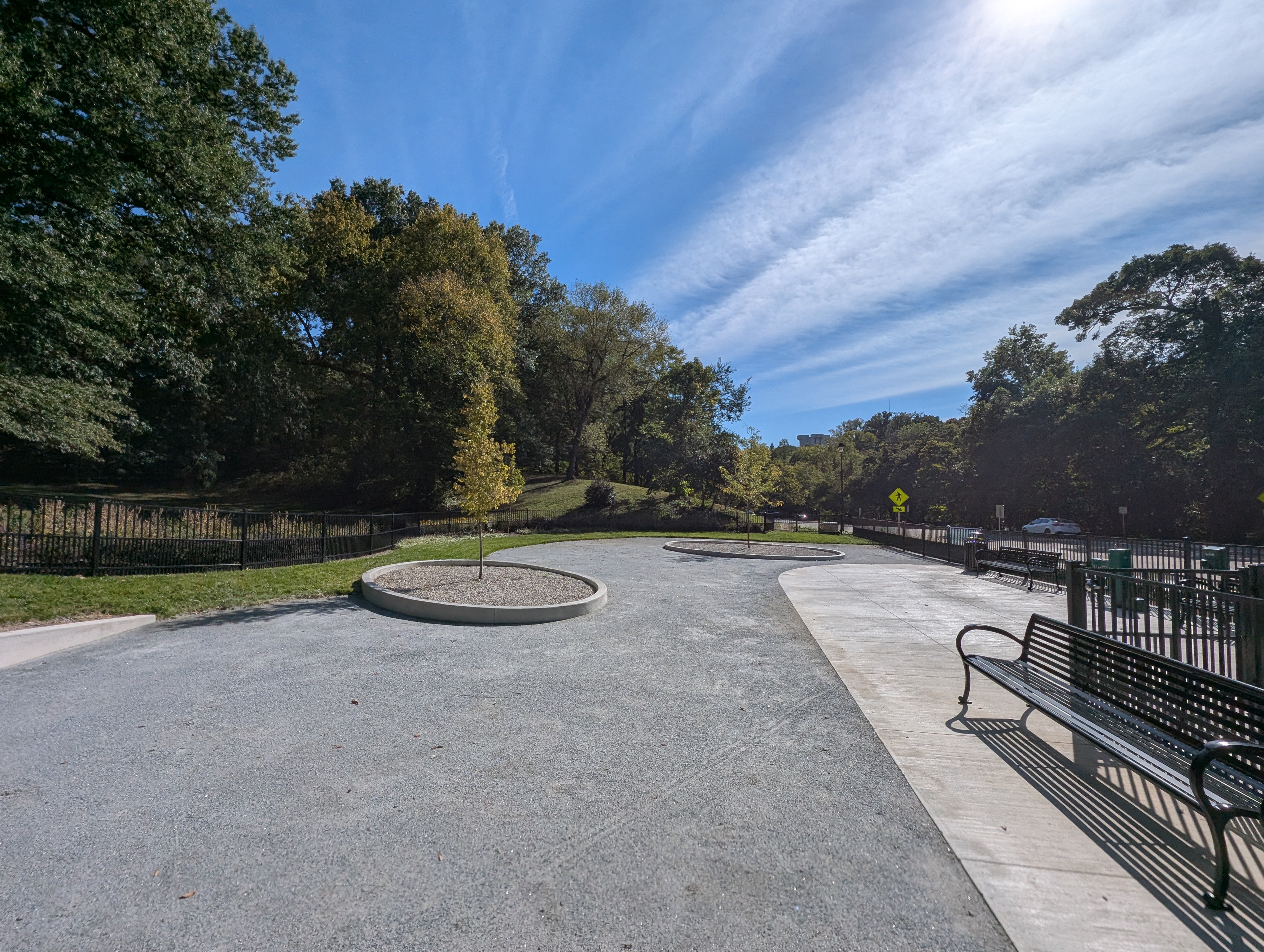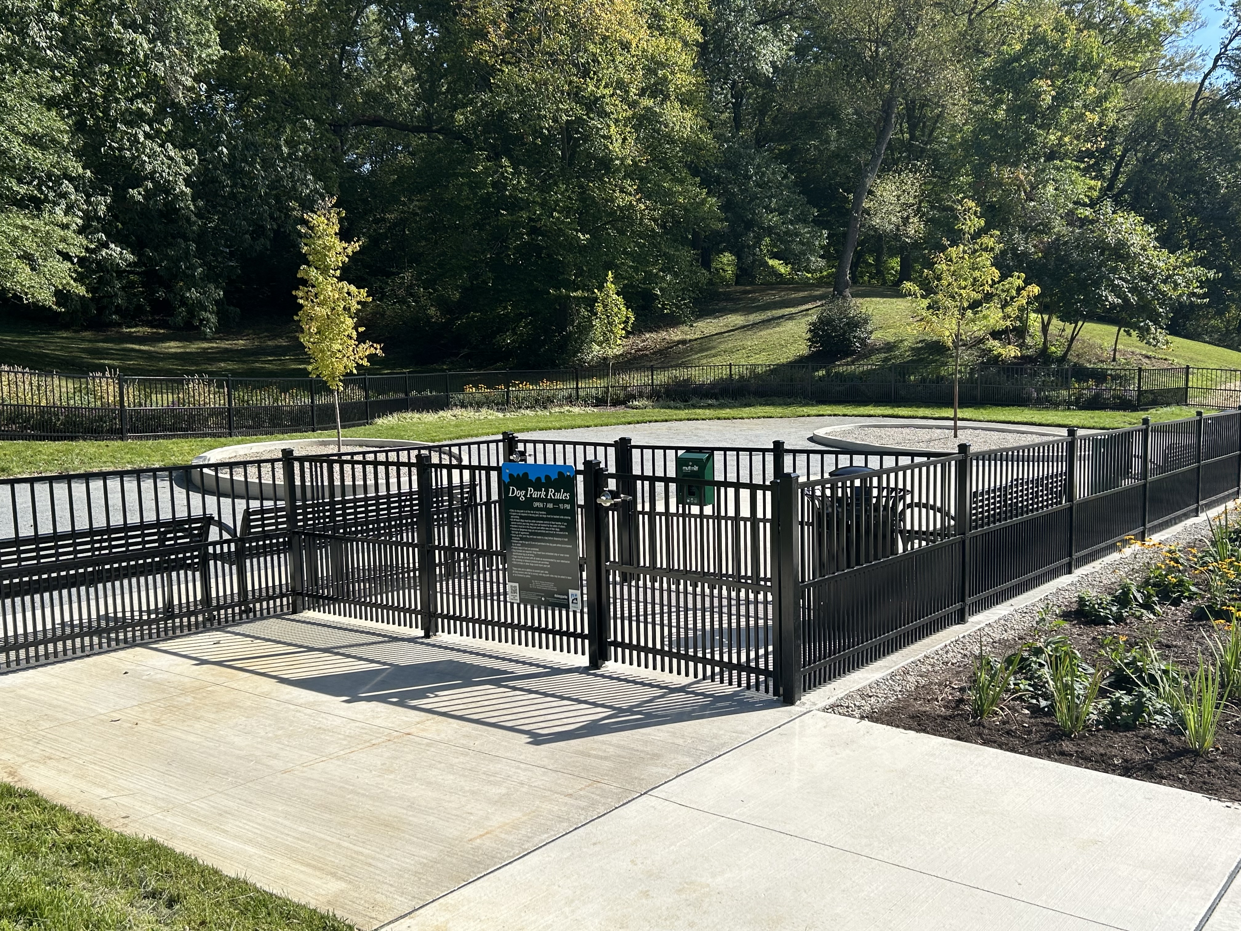 The dog park is located south of the northeastern entrance to Burnet Woods off Jefferson Avenue. The project features benches, adds 3 trees, 3 planting beds, black fencing, water service for maintenance, a drinking fountain with pet bowl, trash receptacles, an accessible entrance area, erosion control, and of course plenty of doggie bags. The project also adds a 2,800-sf prairie meadow providing native habitat attracting birds and pollinators and helping with erosion control via deep root plantings.