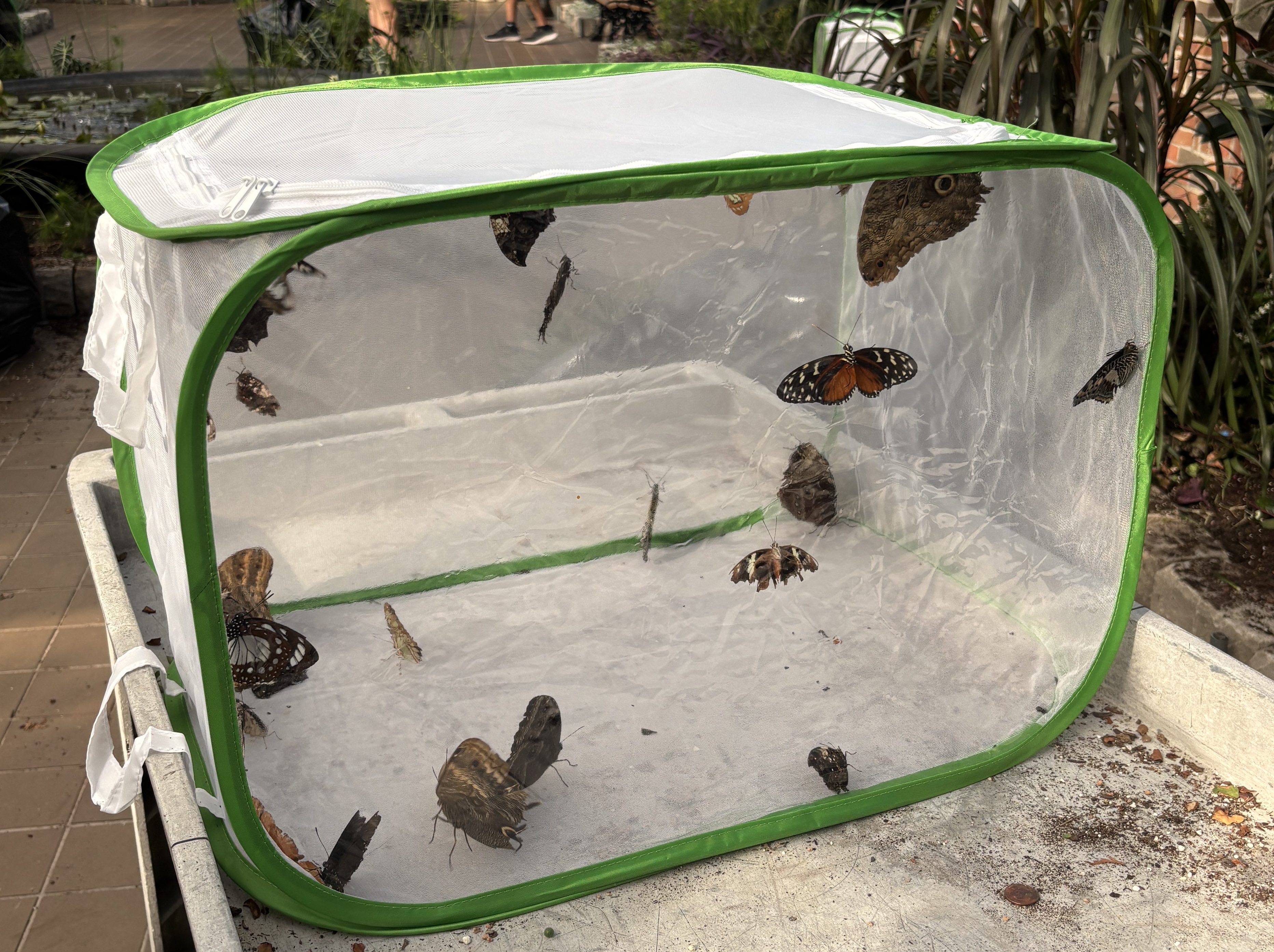 The butterflies are then shipped to the two botanical gardens, where they will arrive the following day. There, they will be released into the conservatories for butterfly shows similar to ours, happily living out the rest of their lives well fed, free from the threat of predators, and surrounded by other butterflies.