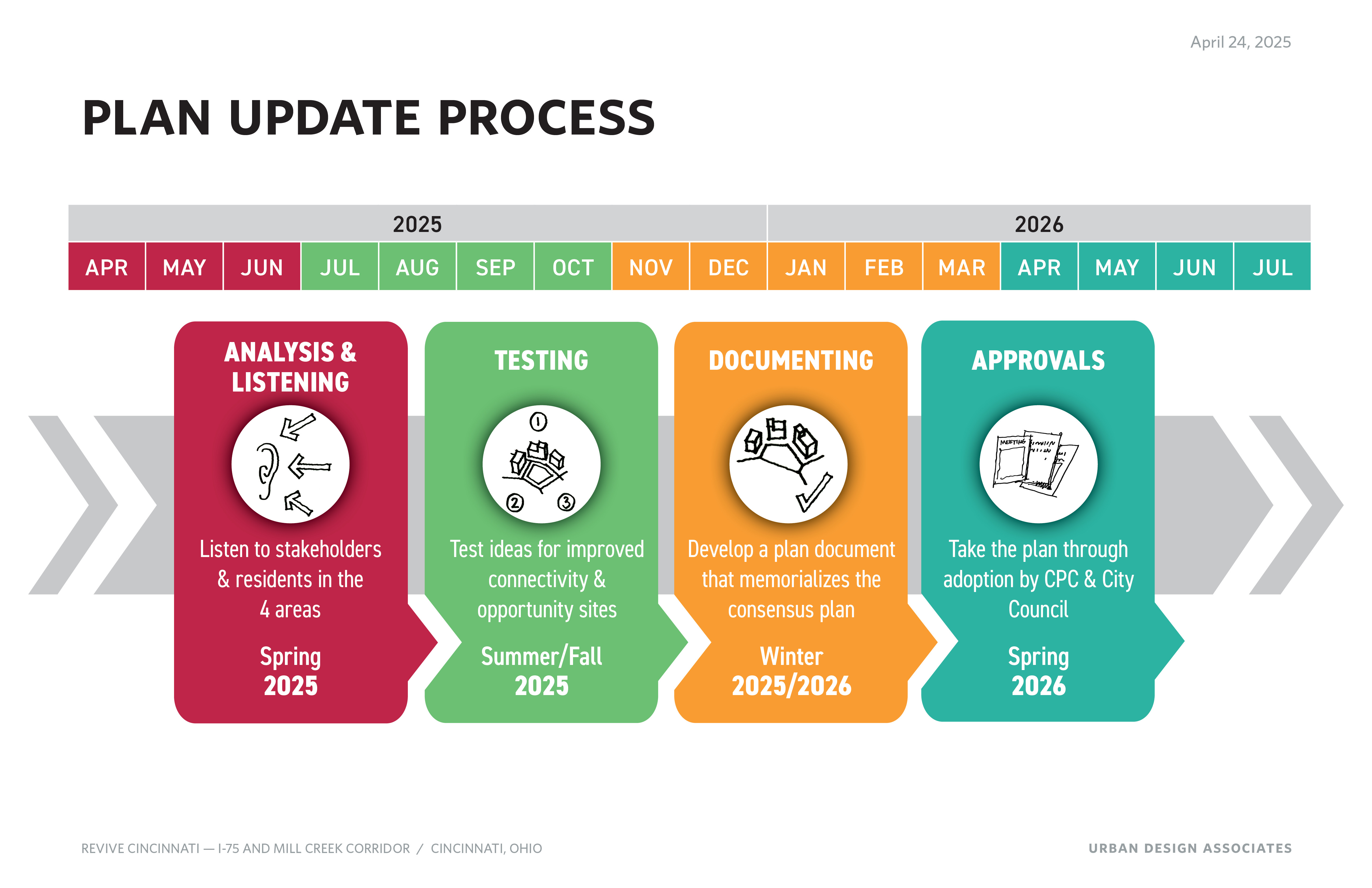 The City has hired UDA, supported by SB Friedman and Blume Community Partners, to update the Revive Cincinnati plan with the input and engagement of the neighborhoods and communities surrounding the I-75 corridor.