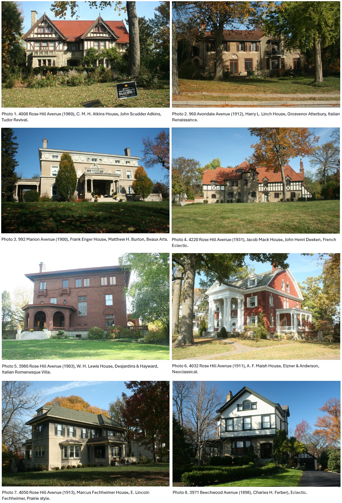 The North Avondale Historic District is significant in the history of Cincinnati as an upper middle-class residential neighborhood developed between 1896 and 1940. Development of North Avondale began in earnest in 1893 with the Rose Hill Park Subdivision, mostly on the west side of Reading Road, followed by other subdivisions on the east side. The force behind Rose Hill Park was Robert Mitchell, the wealthy owner of the Mitchell & Rammelsburg Furniture Company, who invested his profits in real estate. Buyers who built homes in the neighborhood included other captains of industry such as grocer Barney H. Kroger, clockmaker and jeweler Frank Herschede, and brewer Albert Lackman. As the neighborhood developed in the early twentieth century, North Avondale became an enclave for successful German Jews who moved there from the West End.